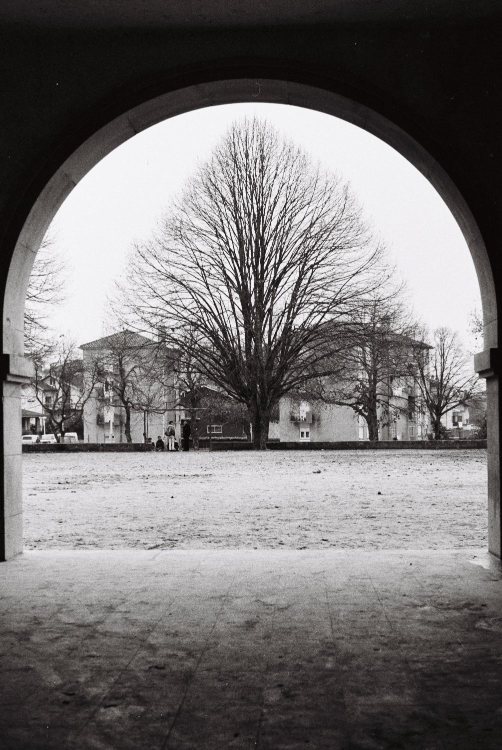 Viseu, late 1980s. During our youth, school was one of the main centres of life. In a time without electronic devices, being present in these places truly mattered. In this image, the old arcade of the Alves Martins School (the “Liceu”) frames a magnificent tree that once stood in the courtyard.
